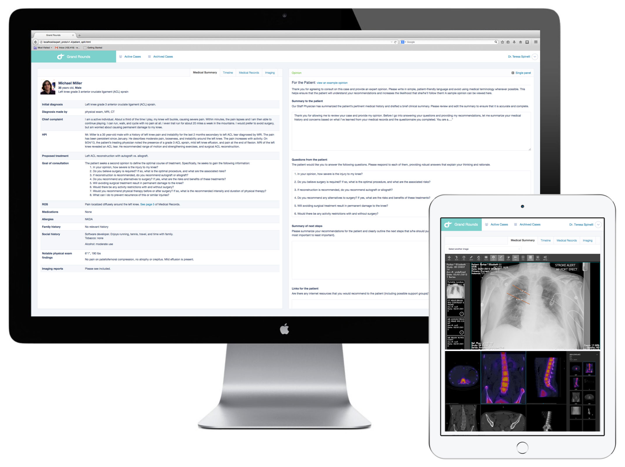 The Grand Rounds Expert Physician Portal, used for reviewing a patient's medical information and composing a second medical opinion.